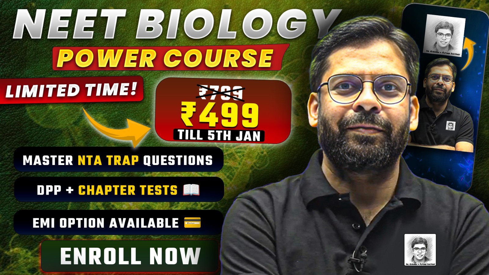 NEET Biology That Actually Improves Your Score 𧬠Stop watching endless lectures. Start solving Biology the way NEET asks. A question-driven Biology program built for students who want marks, not overload. β Dr. Rishabh & Future Doctors π¨ LIMITED-TIME LAUNCH OFFER π° Launch Price: βΉ799 Once the offer ends, price goes up. No extensions. β The Real Problem with Biology Prep Most students: Memorise lines but panic in MCQs Know concepts but fall into NTA traps Practice less, revise randomly Watch too muchβ¦ score too little π This course fixes how you think, not just what you read. β WHAT THIS COURSE DOES DIFFERENTLY π§ Question-First Learning We teach Biology through questions, not slides. Youβll learn: How to approach NEET questions How to eliminate options smartly How to crack tough & confusing MCQs How to identify and avoid NTA trap questions π¨ Result: Calm mind. Faster solving. Higher accuracy. π STRUCTURED PRACTICE SYSTEM β DPP (Daily Practice Paper) after every chapter β Chapter-wise Tests for performance tracking β Questions aligned with latest NEET & NTA pattern No random practice. Every question has a purpose. 𧬠SUBJECT COVERAGE β Zoology β Botany Focused syllabus. Exam-oriented depth. Quality over quantity. Always. π DROPPER BATCH (BIG ANNOUNCEMENT) For serious NEET 2026 droppers π π° Original Price: βΉ1499 Droppers Get: β Complete Live and Recorded Sessions (Zoology + Botany) β Full DPPs + Chapter Tests β Study anytime, revise anytime β Ideal for repeaters under pressure π³ PAYMENT MADE EASY β EMI Option Available Because learning should not stop due to financial stress. π― WHO THIS COURSE IS FOR β Biology-weak students aiming strong ranks β Students tired of long lectures with low output β Droppers who want clarity, not confusion β Aspirants serious about NEET 2026 π OUR PROMISE No hype. No unnecessary content. Just clear concepts, smart practice, and exam-ready thinking. You wonβt just attempt questions. Youβll control them. π FINAL CALL Biology wonβt improve by waiting. Marks improve by better decisions today. β Dr. Rishabh & Future Doctors